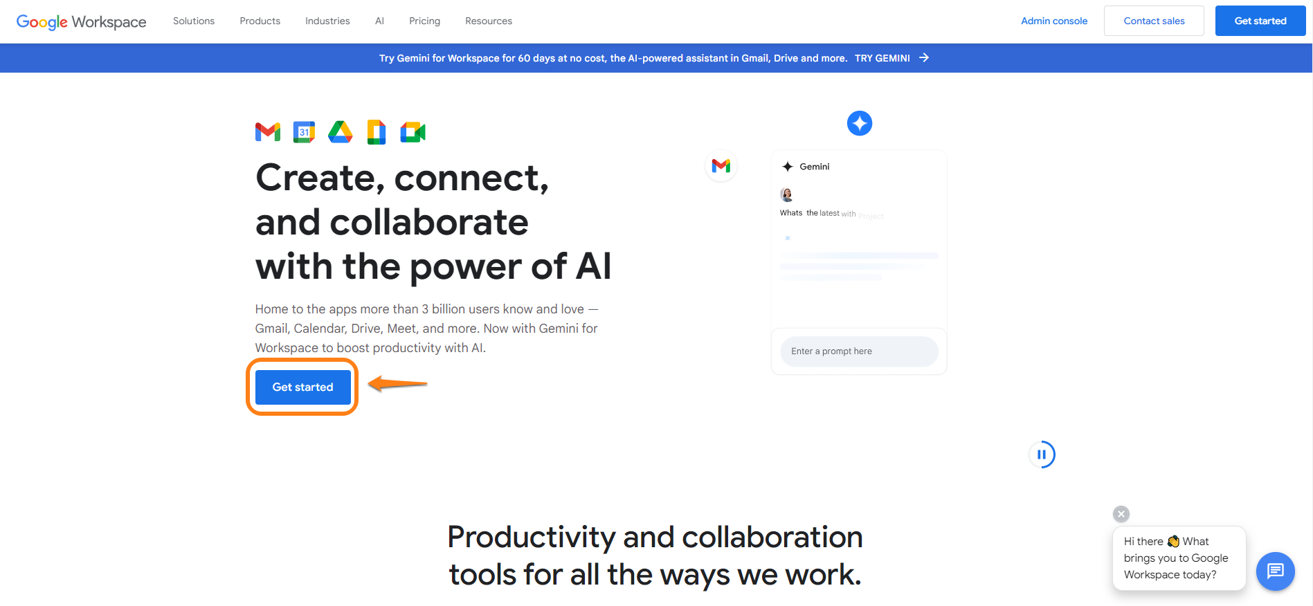 For this guide, we will use Google Workspace, and the flow is similar to all other workspaces. To begin, click on "Get started" and add the sign-up information.