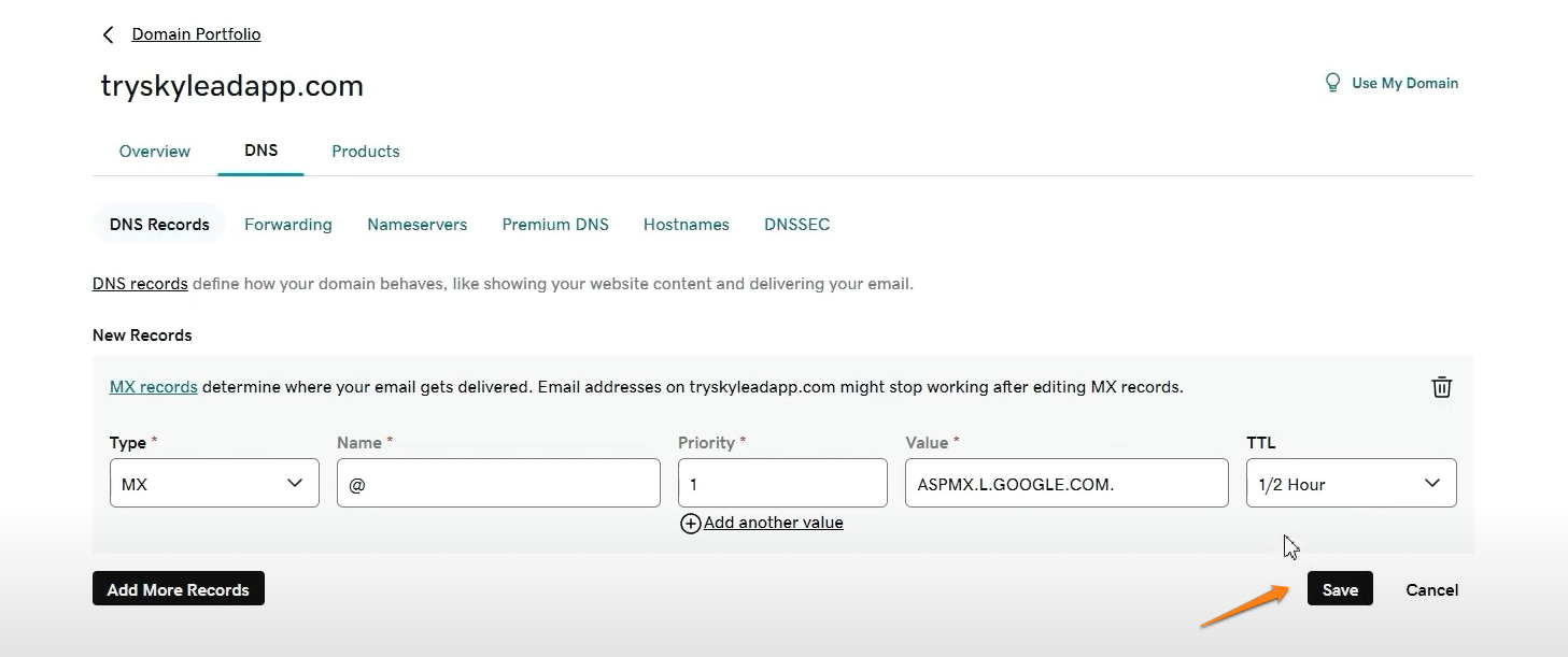 🔔 Here’s how adding your MX record should look like in GoDaddy.